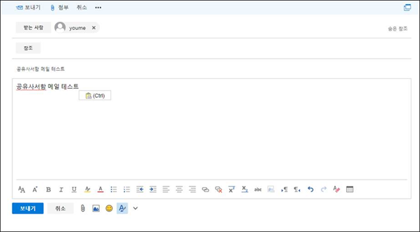 확인 내용 : Exchange On-Premise에서 Powershell을 통한 추가 작업 시 메일 송/수신이 가능합니다.
