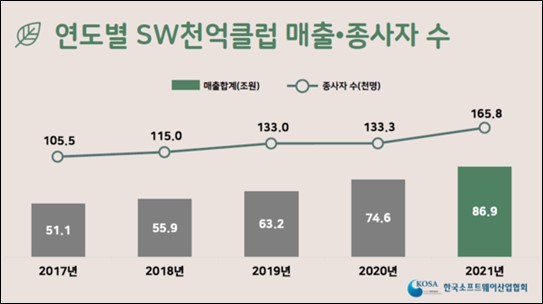 - 한국소프트웨어산업협회가 ‘2021년 SW천억클럽’을 발표.
