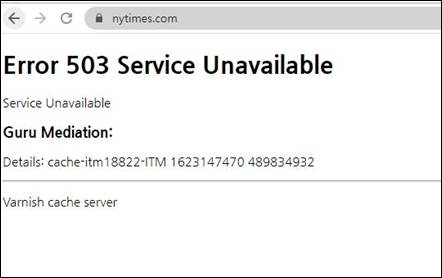 - 미국 뉴욕타임스(NYT), CNN, 블룸버그통신, 영국 가디언 등 세계 유수 언론 웹사이트에 동시 접속 장애 발생.