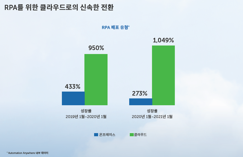클라우드 기반 RPA 도입 기업 1000% 이상 증가했다.