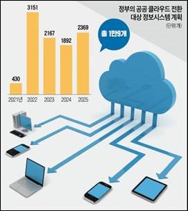 - 정부는 공공기관 정보 시스템 1만여개를 클라우드로 전환·통합하기 위해 2025년까지 5년간 8600억원을 투입할 계획.