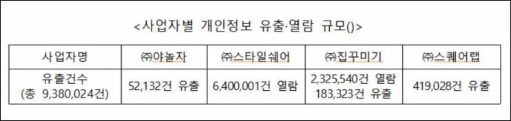 - 개인정보가 유출된 기업들에게는 총 1억 8530만원의 과징금과 8300만원의 과태료를 부과, 시정명령, 공표 등 시정조치를 내림.
