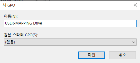 - [사용자 구성] > [기본 설정] > [드라이브 매핑] 선택 > [새로 만들기] > [매핑된 드라이브]