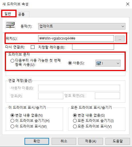 - 매핑하려는 드라이브/폴더의 경로 설정