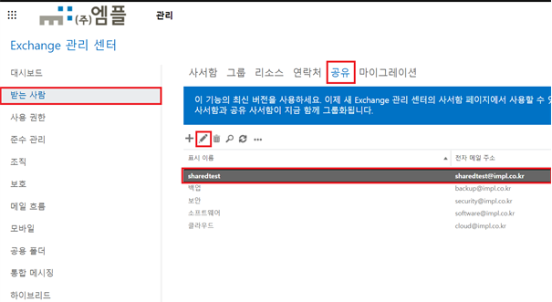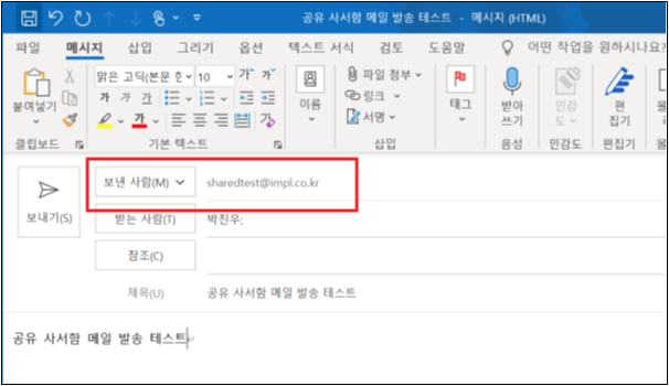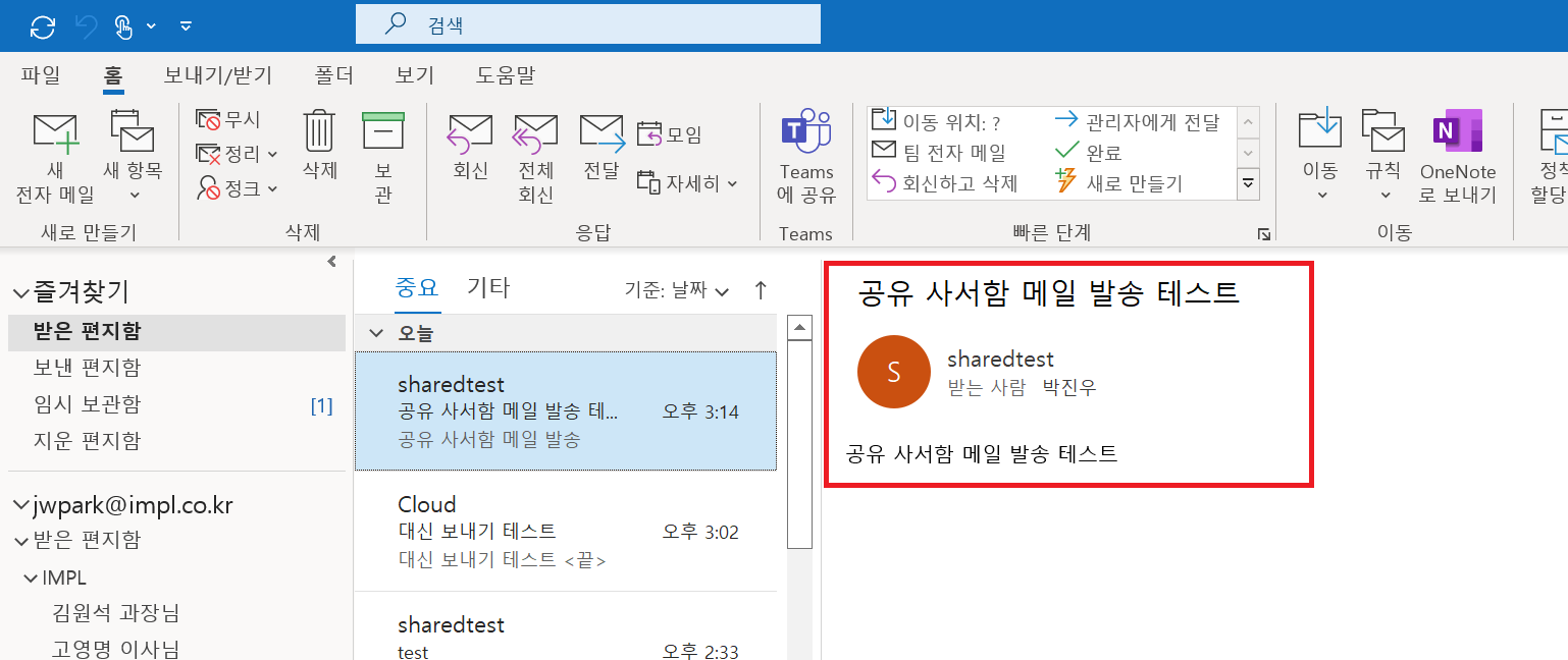 - 보낸 사람이 공유 사서함 주소로 메일 수신 확인