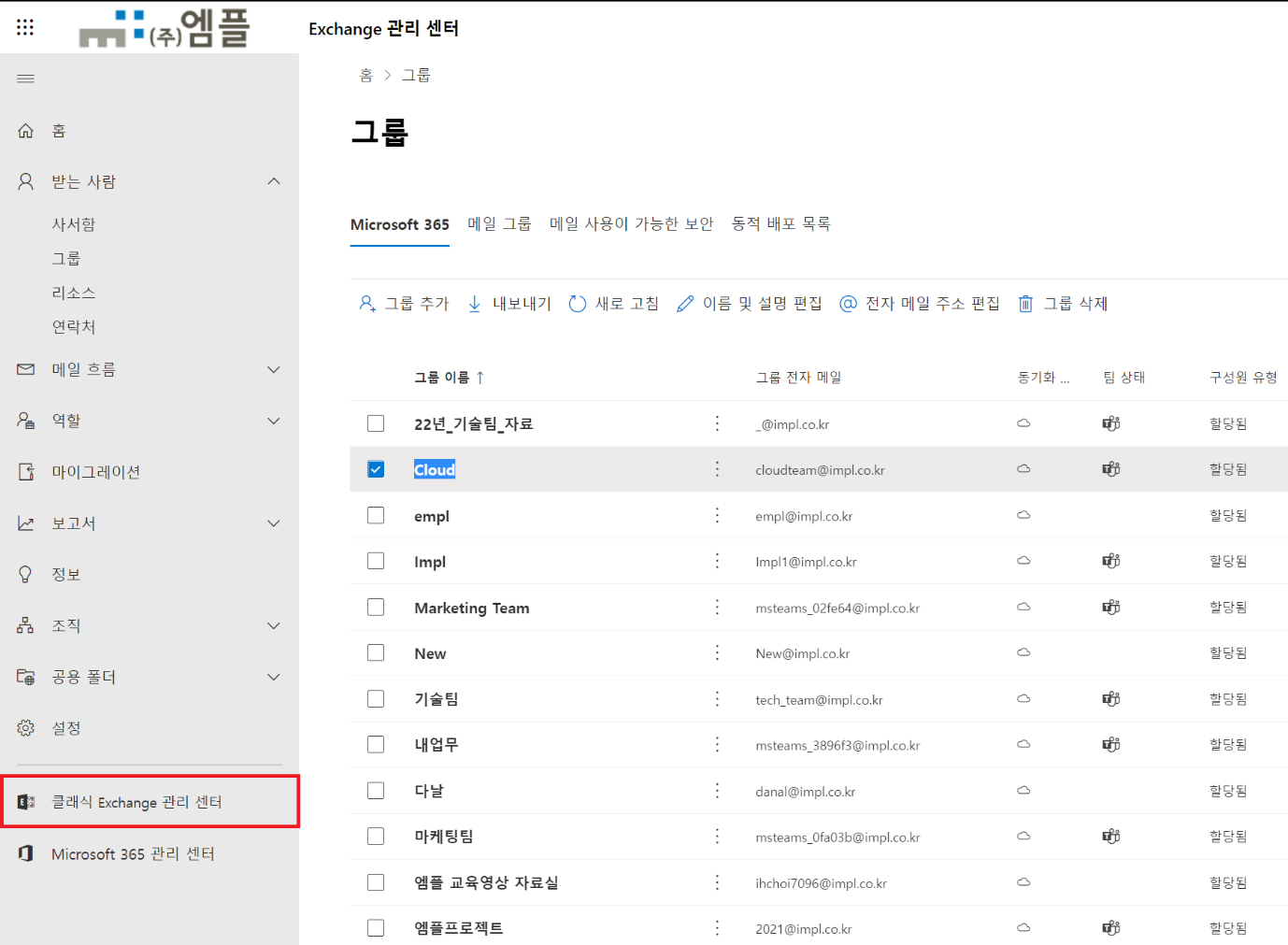 2. [Exchange 관리 센터] > [클래식 Exchange 관리 센터] 접속