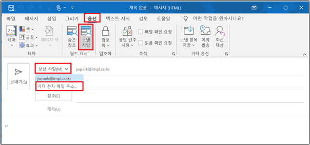 1. [Outlook] > [옵션] > [보낸 사람] > [기타 전자 메일 주소]
