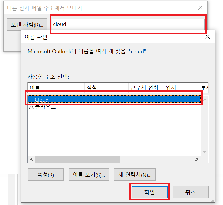 1. [Outlook] > [옵션] > [보낸 사람] > [기타 전자 메일 주소]