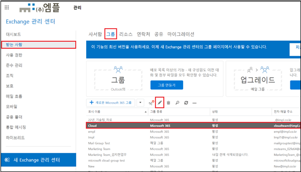 1. [Microsoft 365 관리자 페이지] 접속 > [Exchange 관리센터] 접속