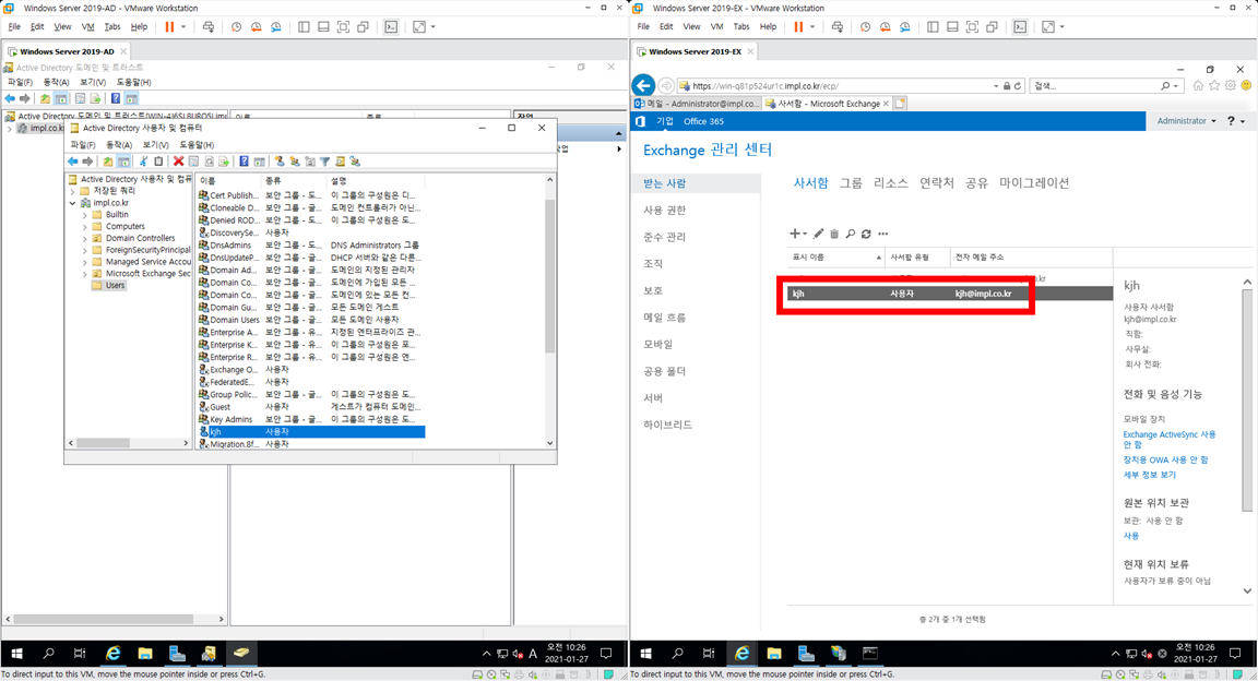 5. Exchange 관리 센터에서 사용자를 추가합니다.