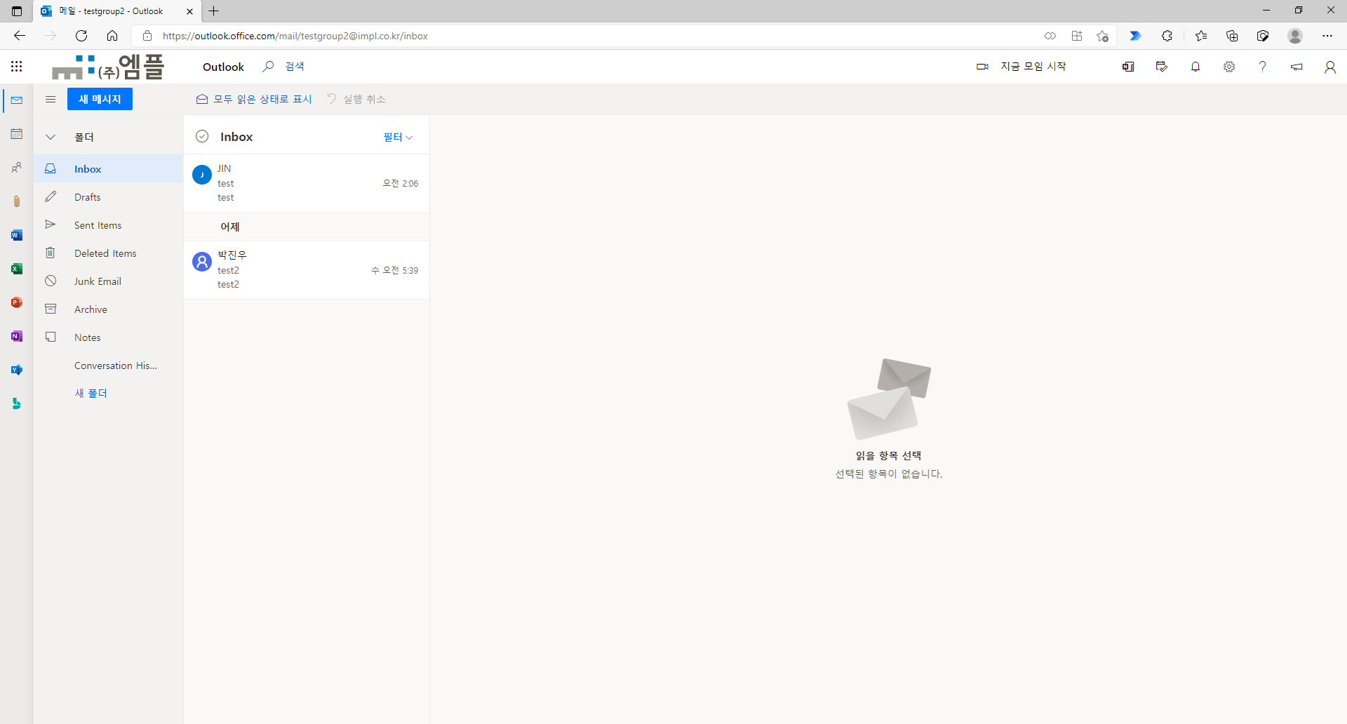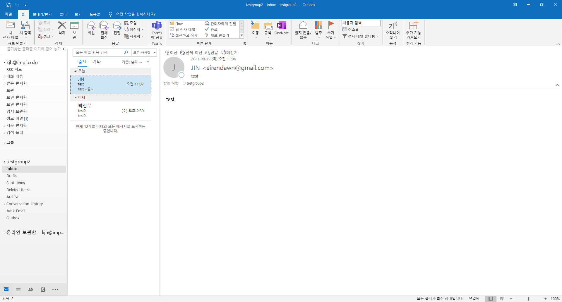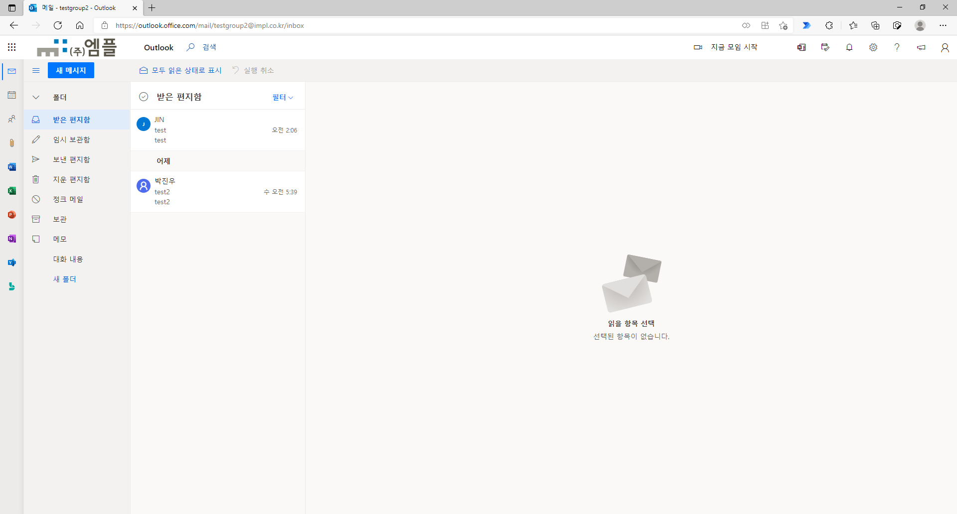 Microsoft 365에서 M365그룹 및 공유 사서함을 생성시 Outlook Application에 연결되는 메일함이
