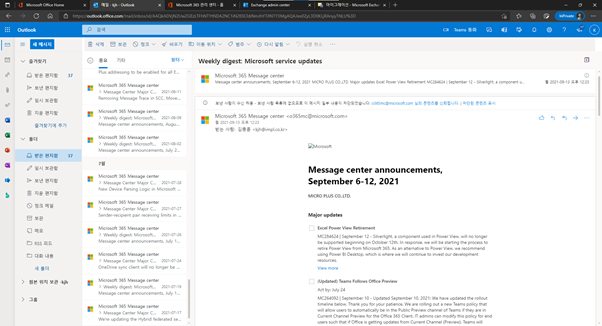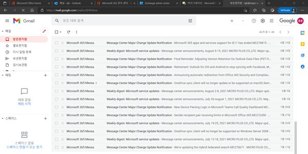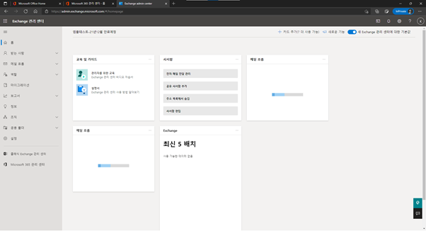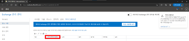 진행중 클래식 Exchange 관리센터와 Microsoft 365 Exchange 관리센터를 오가며 작업해야 합니다.
