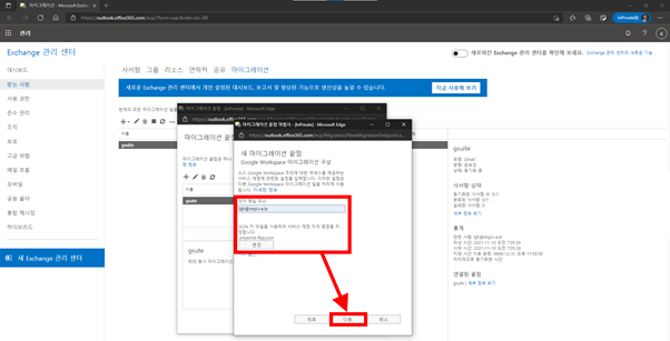 g-suite에서 사용중인 메일함을 Exchange Online으로 마이그레이션 하는 방법에 대해 기술