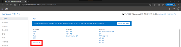 1. Office 365 Exchange Online에 관리자 권한으로 접속합니다.