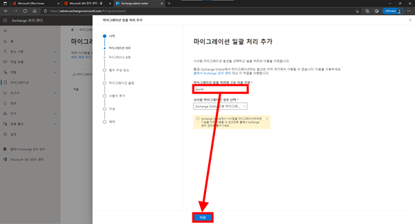 3. 마이그레이션 일괄 처리에 고유 이름을 지정 후 다음을 선택합니다.