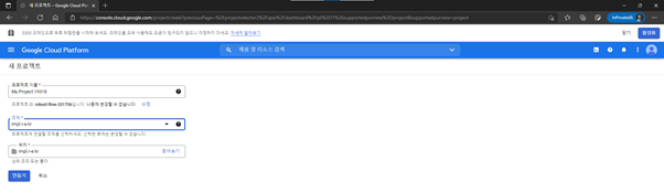 8. 아래의 그림처럼 “Permission iam.serviceAccounts.create is required to perform this operation on project projects/projectid-wzpi.” 메시지가 확인되면 링크를 눌러 google 창으로 이동합니다.