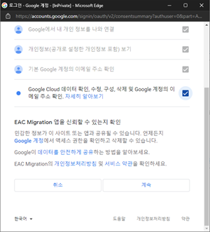 9. google 사이트에서 “동의 및 계속하기”를 진행합니다.