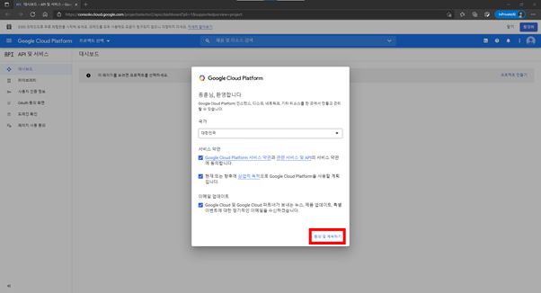 9. google 사이트에서 “동의 및 계속하기”를 진행합니다.