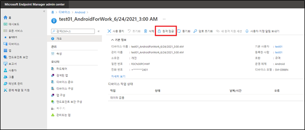 3. 원격 잠금 설정 할 디바이스 선택 후 [원격 잠금] 실행