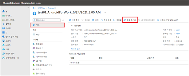 4. 해당 디바이스에서 암호 초기화 확인