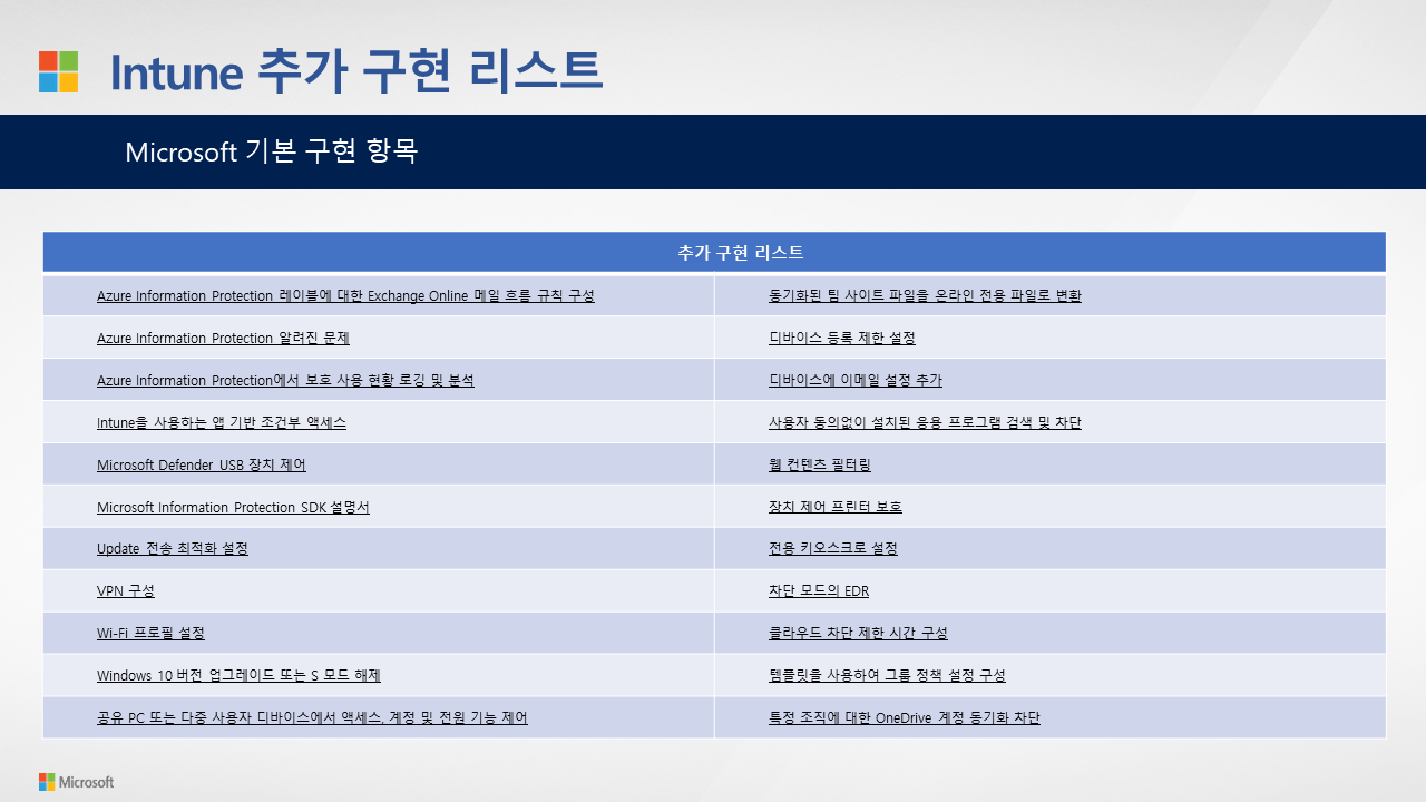 Microsoft 365 [Intune] Microsoft 365 EMS(enterprise mobility + security) 제안서 by (주)엠플 2021. 7. 11. Microsoft 365 EMS(enterprise mobility + security) 제안서.pdf 2.63MB 공유하기 게시글 관리 MPL Cloud Team 저작자표시 비영리 변경금지 (새창열림) 'Microsoft 365' 카테고리의 다른 글 [Intune] AIP_레이블 규칙에 따른 워터마크 적용 방법 (0) 2021.07.21 [Intune] WIP(Windows Information Protection) 및 MAM(모바일 애플리케이션 관리)의 대표 기능 (파일 외부 유출 제어) (0) 2021.07.12 [Intune] MDM(모바일 디바이스 관리) 및 MAM(모바일 애플리케이션 관리)의 대표 기능_⑧어플리케이션 배포 (0) 2021.07.10 [Intune] MDM(모바일 디바이스 관리) 및 MAM(모바일 애플리케이션 관리)의 대표 기능_⑦다른 위치로 복사 기능 제한 (0) 2021.07.09 [Intune] Microsoft 365 Intune의 MDM(모바일 디바이스 관리) 및 MAM(모바일 애플리케이션 관리)의 대표 기능_⑥화면 캡처 사용 불가 방법 기술 (0) 2021.07.08 관련글 [Intune] AIP_레이블 규칙에 따른 워터마크 적용 방법 [Intune] WIP(Windows Information Protection) 및 MAM(모바일 애플리케이션 관리)의 대표 기능 (파일 외부 유출 제어) [Intune] MDM(모바일 디바이스 관리) 및 MAM(모바일 애플리케이션 관리)의 대표 기능_⑧어플리케이션 배포 [Intune] MDM(모바일 디바이스 관리) 및 MAM(모바일 애플리케이션 관리)의 대표 기능_⑦다른 위치로 복사 기능 제한 댓글
