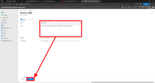 4. [이름] / [설명]에 필요한 내용을 입력 후 [다음]을 선택