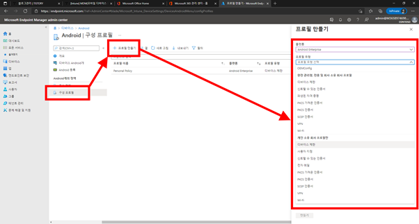 3. [구성 프로필] > [프로필 만들기] 이동 후 [플랫폼] / [프로필 유형] 선택 후 [만들기]를 선택
