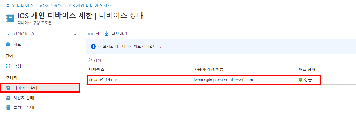- [디바이스 상태]에서 디바이스의 정책 규격 여부 확인