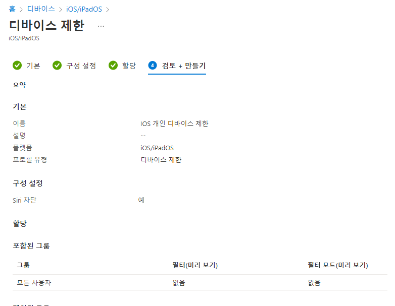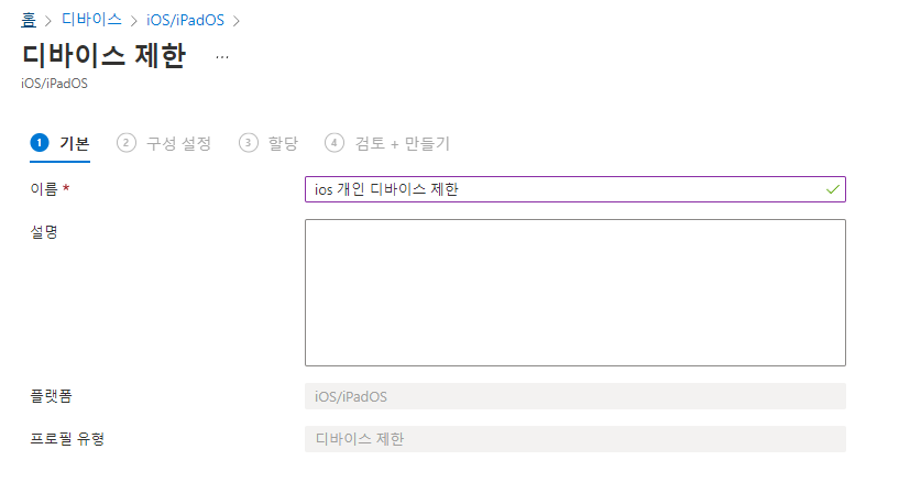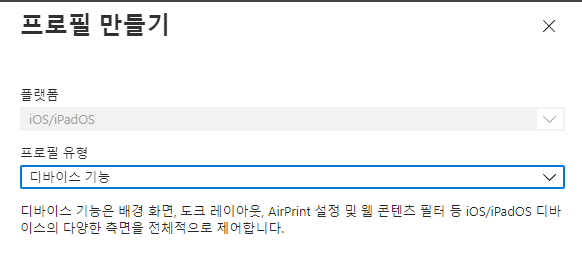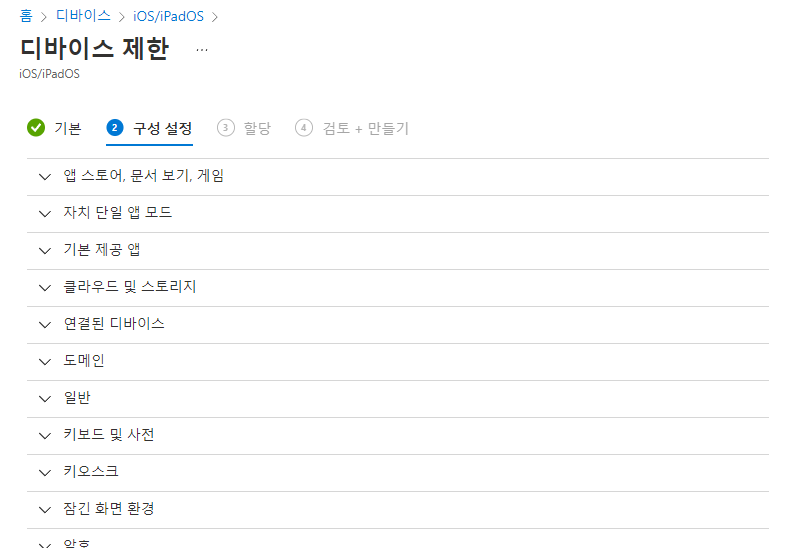 ■ IOS/iPadOS 디바이스 구성 정책 생성