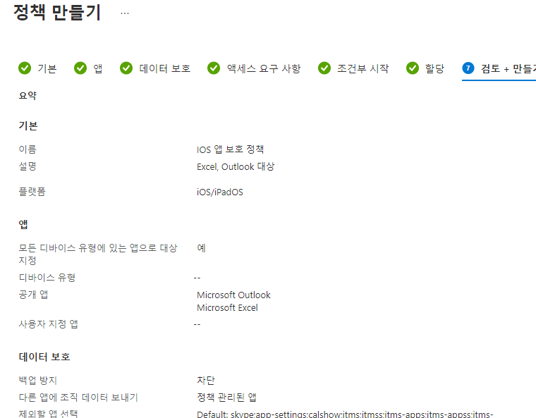 해당 문서에서는 앱 보호 정책 생성 방법에 대해 기술