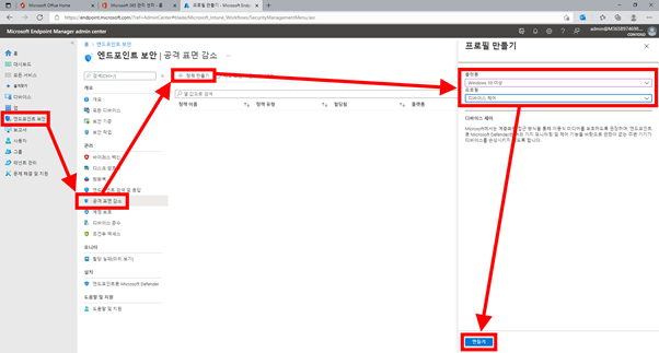 2. 엔드포인트 보안 → 공격 표면 감소 → 정책 만들기 → 플랫폼 → Windows 10 이상 → 프로필 → 디바이스 제어 → 만들기