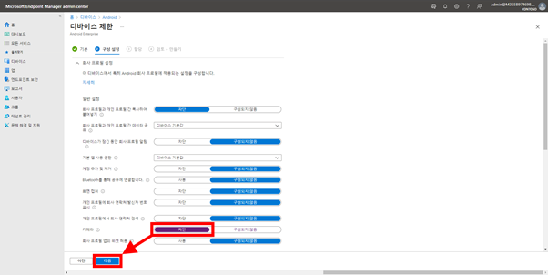 5. [카메라] 부분을 차단 후 [다음]을 선택