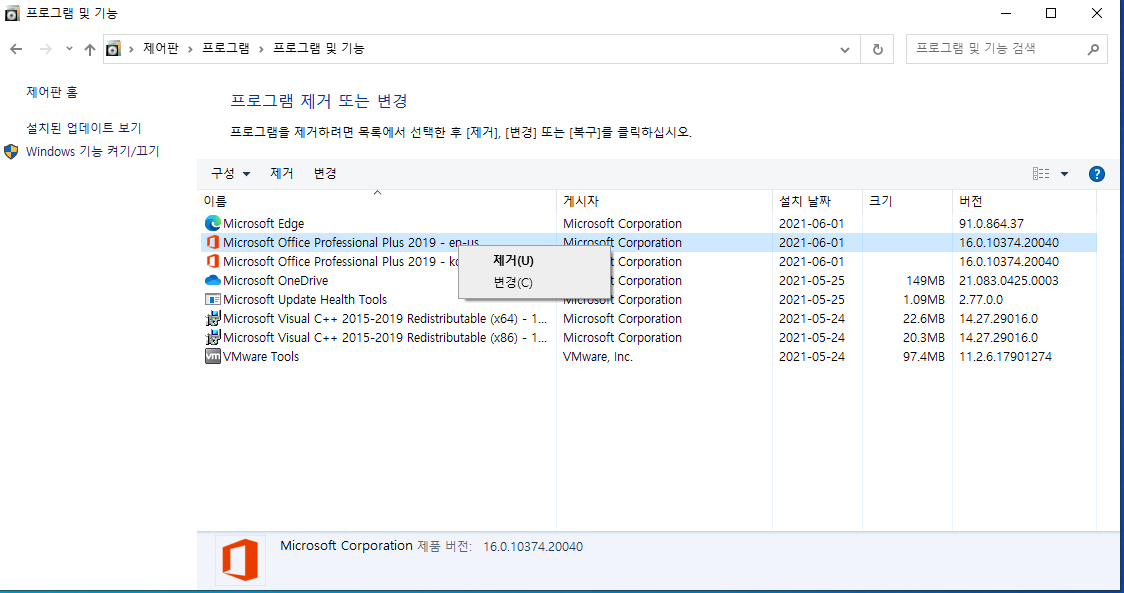 ■ Microsoft OFFICE 삭제 방법