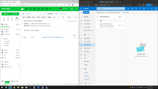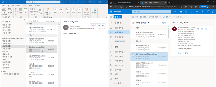 9. outlook.office.com 사용자 계정 메일 수발신 확인