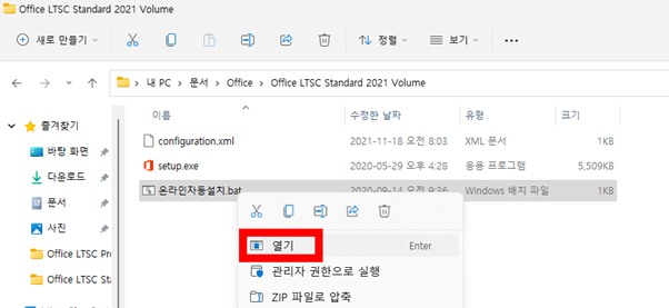 Office 2021 온라인 설치 파일을 생성 및 설치하는 방법에 대해 기술