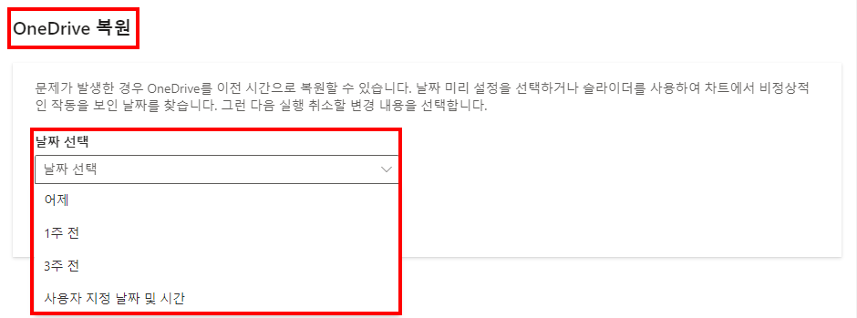 1. [OneDrive] Web 페이지 접속 > [설정] > [OneDrive 복원]