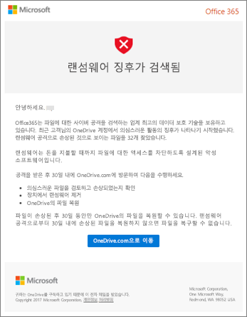 4. 사용자의 메일로 OneDrive 내 파일에 대해 랜섬웨어 감염 탐지 결과 알림