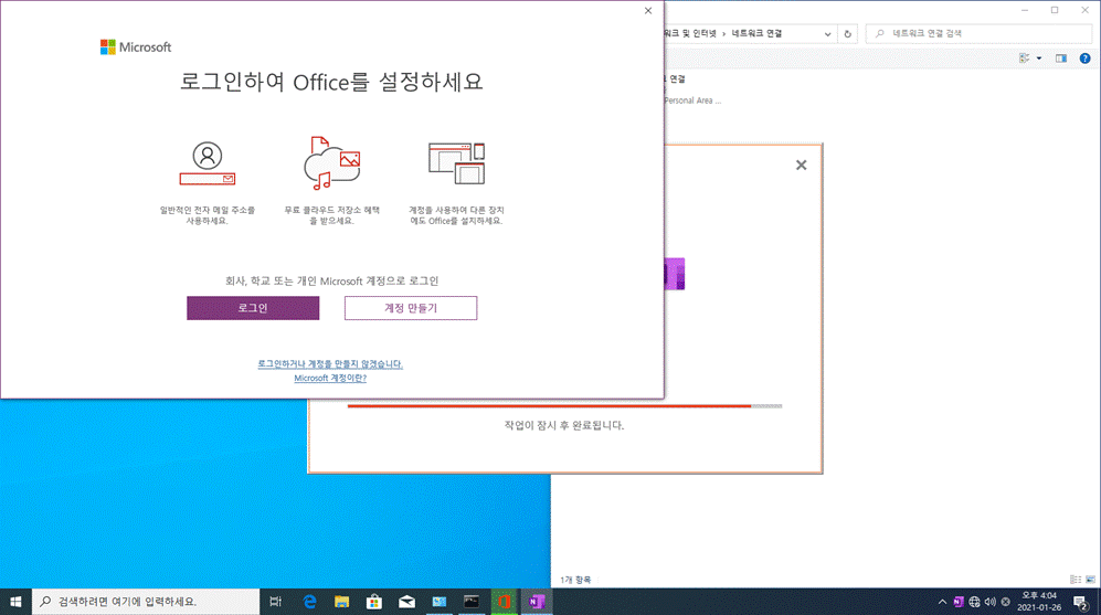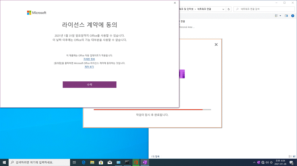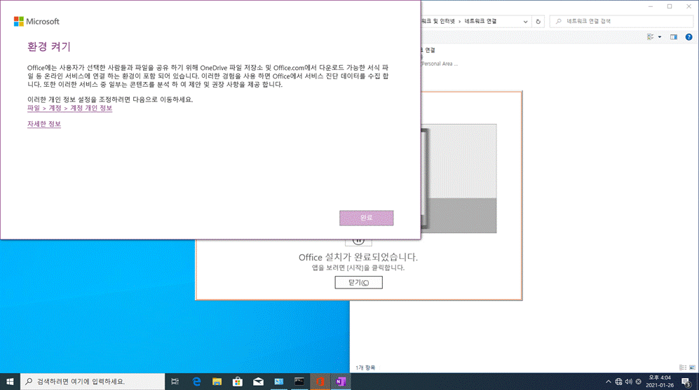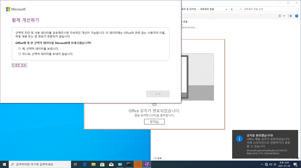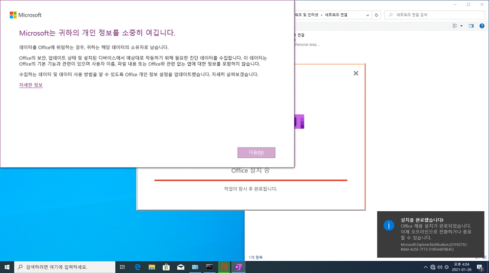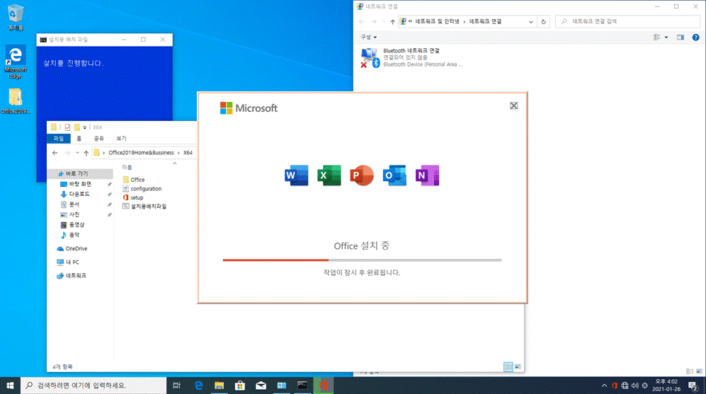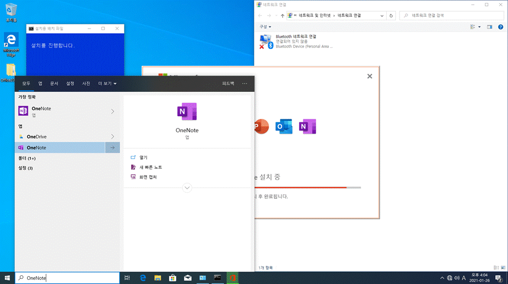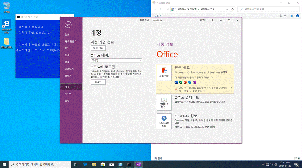 2. 폐쇠망 설치로 Office 2019 Standard를 설치하여 확인한 결과 OneNote가 독립적으로 작동하는 것을 확인하였습니다.