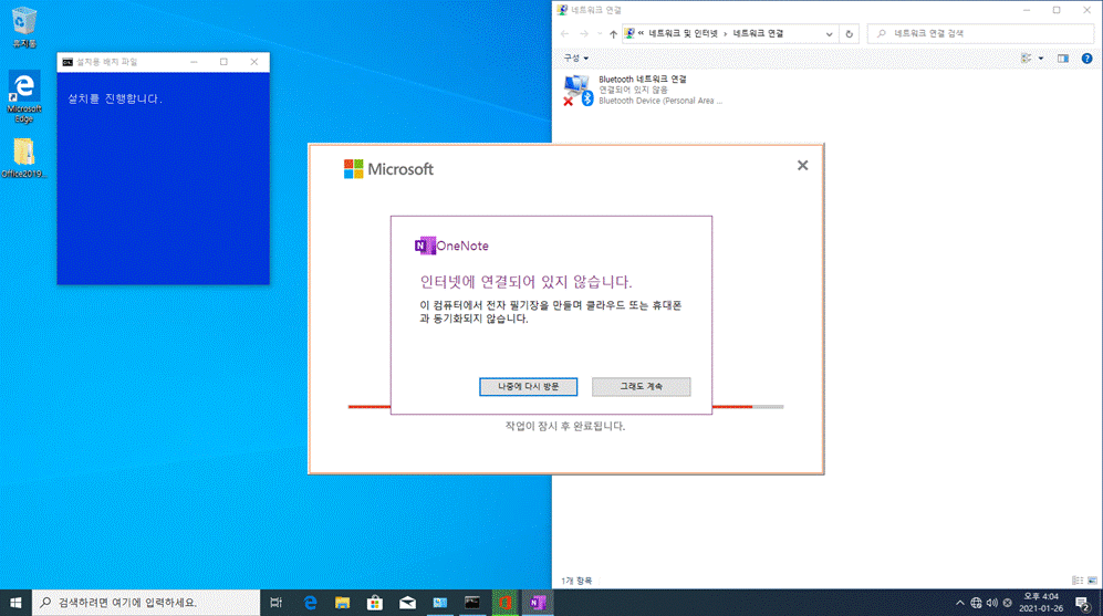 2. 폐쇠망 설치로 Office 2019 Standard를 설치하여 확인한 결과 OneNote가 독립적으로 작동하는 것을 확인하였습니다.