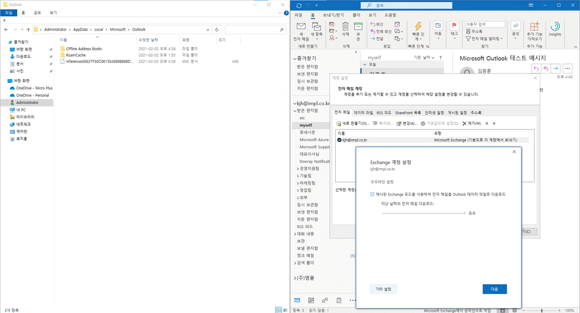 해결 방법 : Exchange online Server에 Online으로 데이터 캐싱 없이 연결
