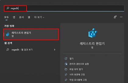 - Windows 검색창에서 regedit 검색