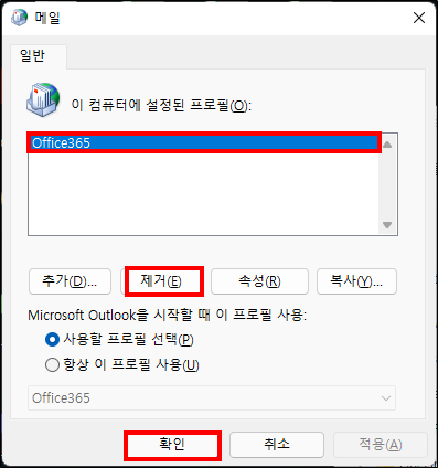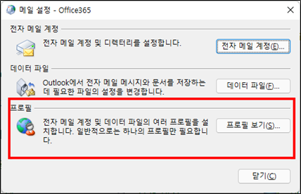 7. Outlook 실행 후 새 프로필 생성 및 Outlook 계정 연결