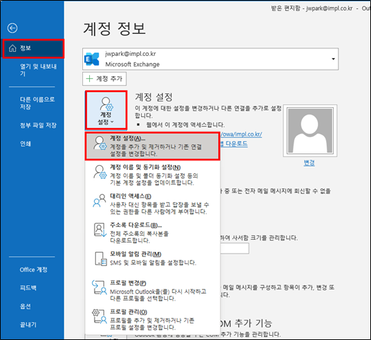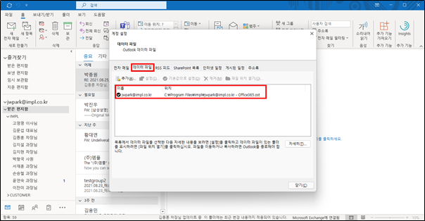 Outlook 데이터 파일(OST) 변경 방법에 대해 기술