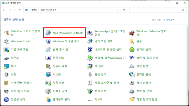 4. [제어판] > [Mail (Microsoft Outlook)] 실행