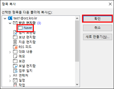 - 이동 또는 복사할 사서함 선택 후 확인