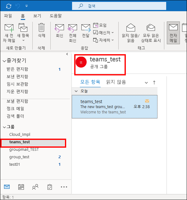 ■ Outlook에서 Teams 생성 그룹 표시 방법