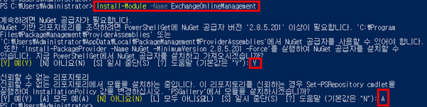 - 명령어 : Install-Module -Name ExchangeOnlineManagement