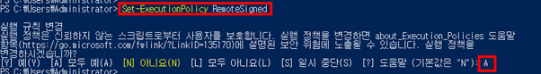 - 명령어 : Set-ExecutionPolicy RemoteSigned