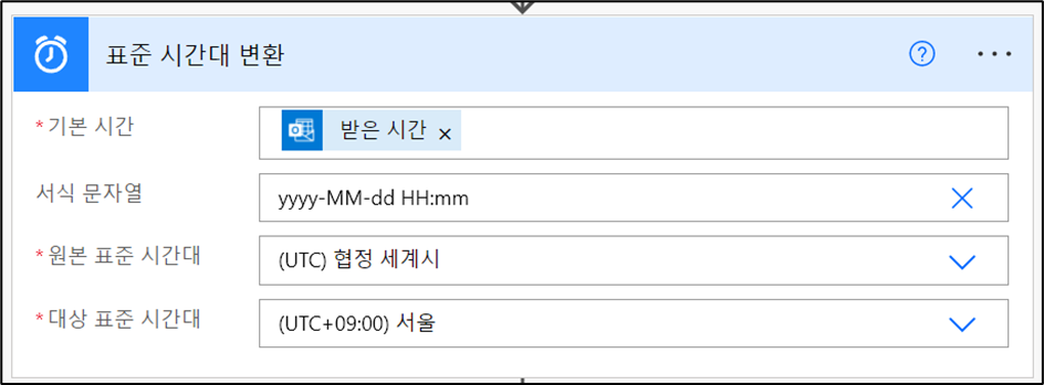 - 대상 표준 시간 : (UTC+09:00) 서울 - 서식 문자열 : yyyy-MM-dd HH:mm