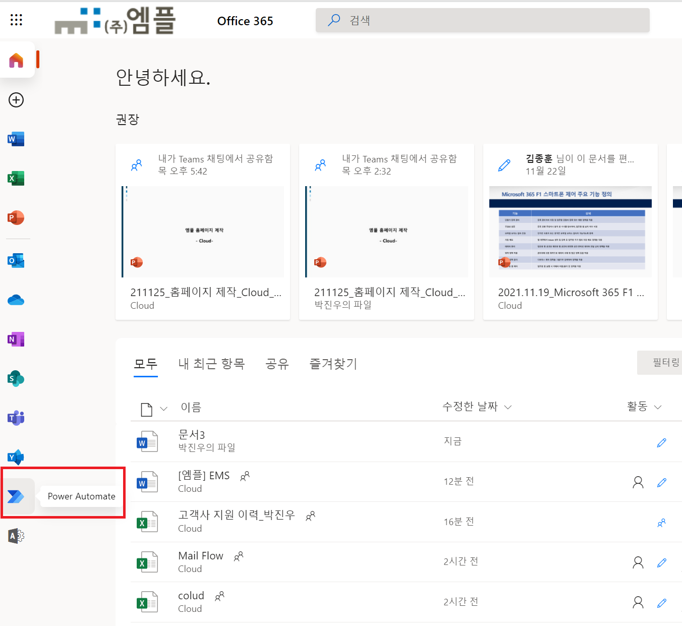 1. [Microsoft 365 Web Portal] 접속 > [Power Automate] 실행